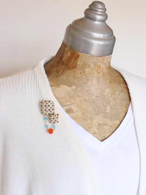 太陽をイメージしてオレンジの天然石カーネリアンをメガネ留めにしてブローチにあしらいます。