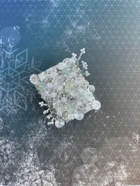 完成したブローチは、小さめサイズなので普段使いしやすく、どんなスタイルにもマッチします。