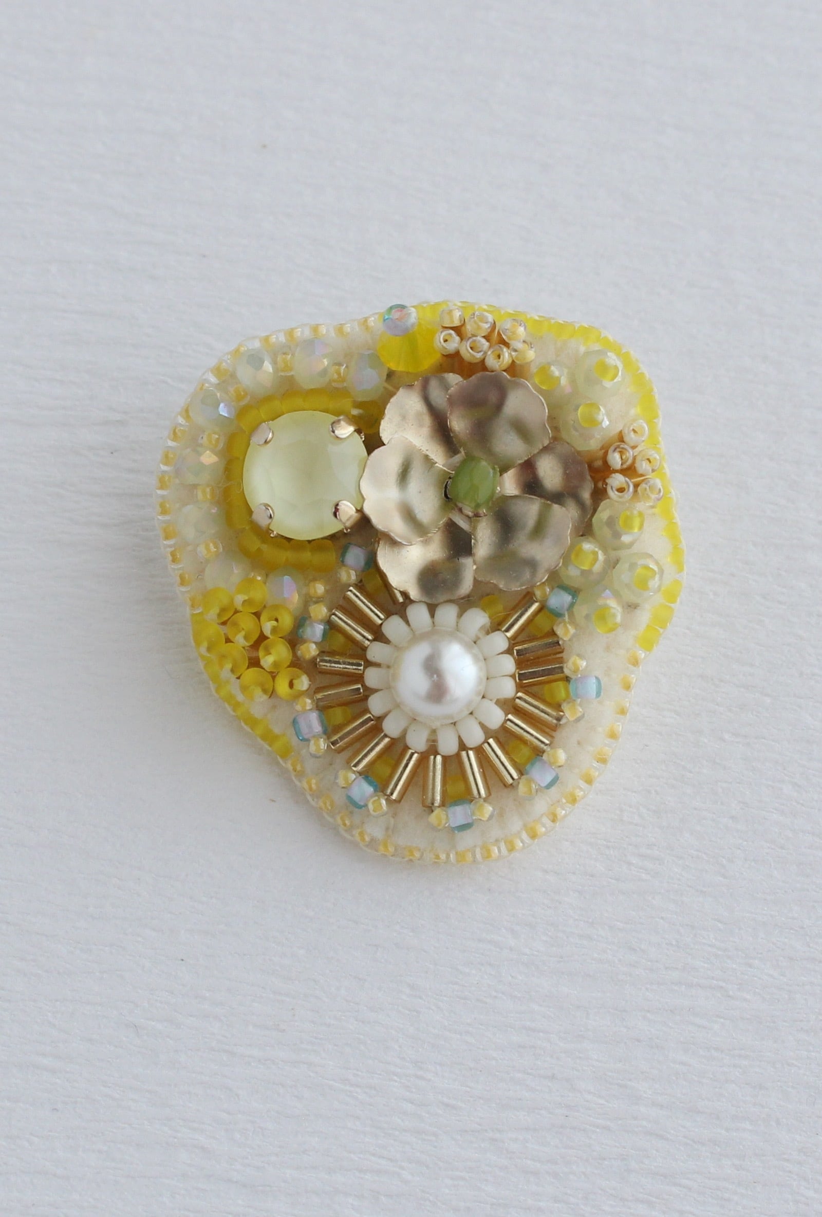春の装いにそっと花を添える小さなブーケのようなビーズ刺繍ブローチ。