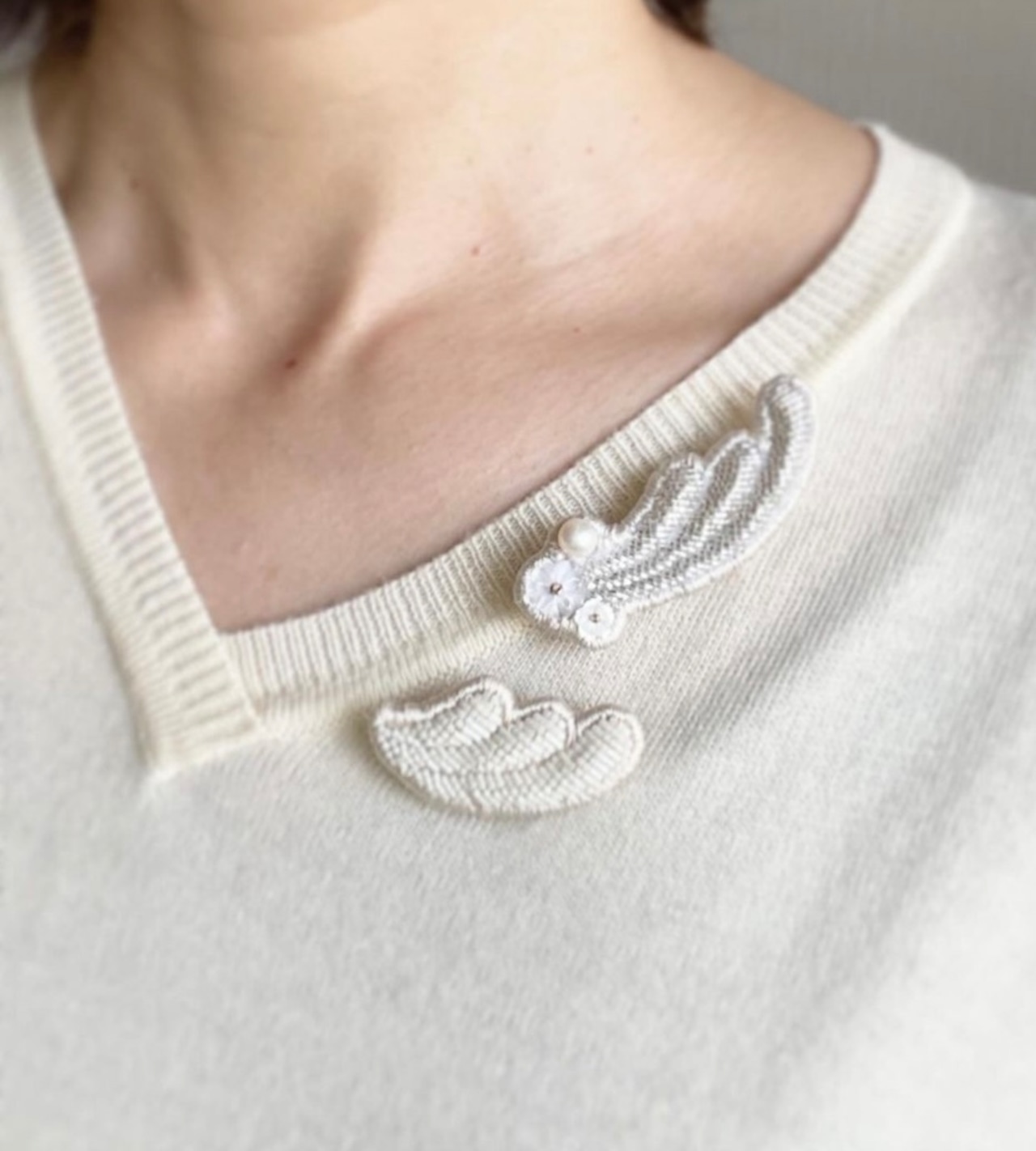 普段着はもちろん、他のお手持ちのブローチとコーディネートしてつけてみてほしいブローチです
