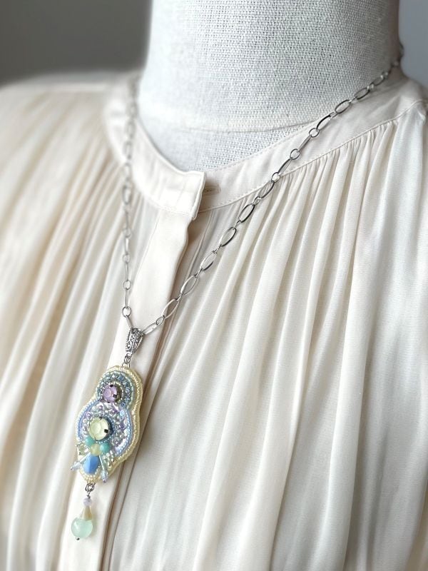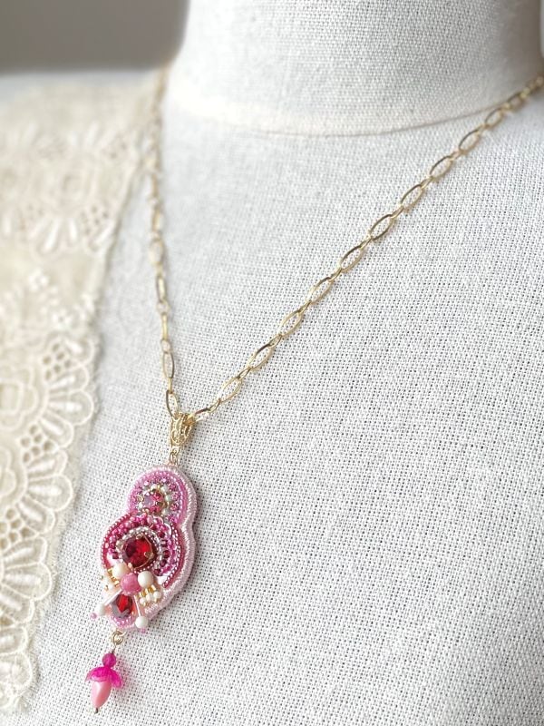 チェーンの端に小さな水晶の玉をつけています。