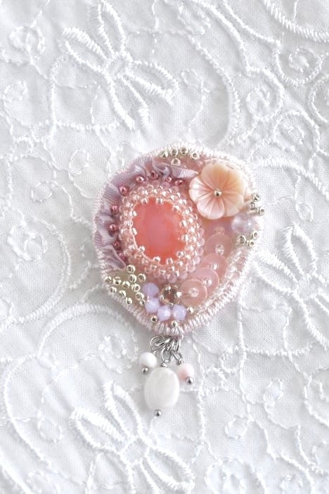 桜の花をイメージしたふんわりと優しいイメージのビーズ刺繍ブローチキット