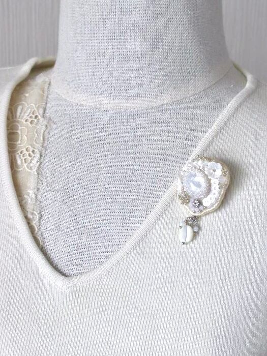 シェル、フロスト水晶、ガラスビーズ、スパンコール、クリスタルガラスビーズ、リボン、絹糸、フェルト、布、ブローチ金具、芯