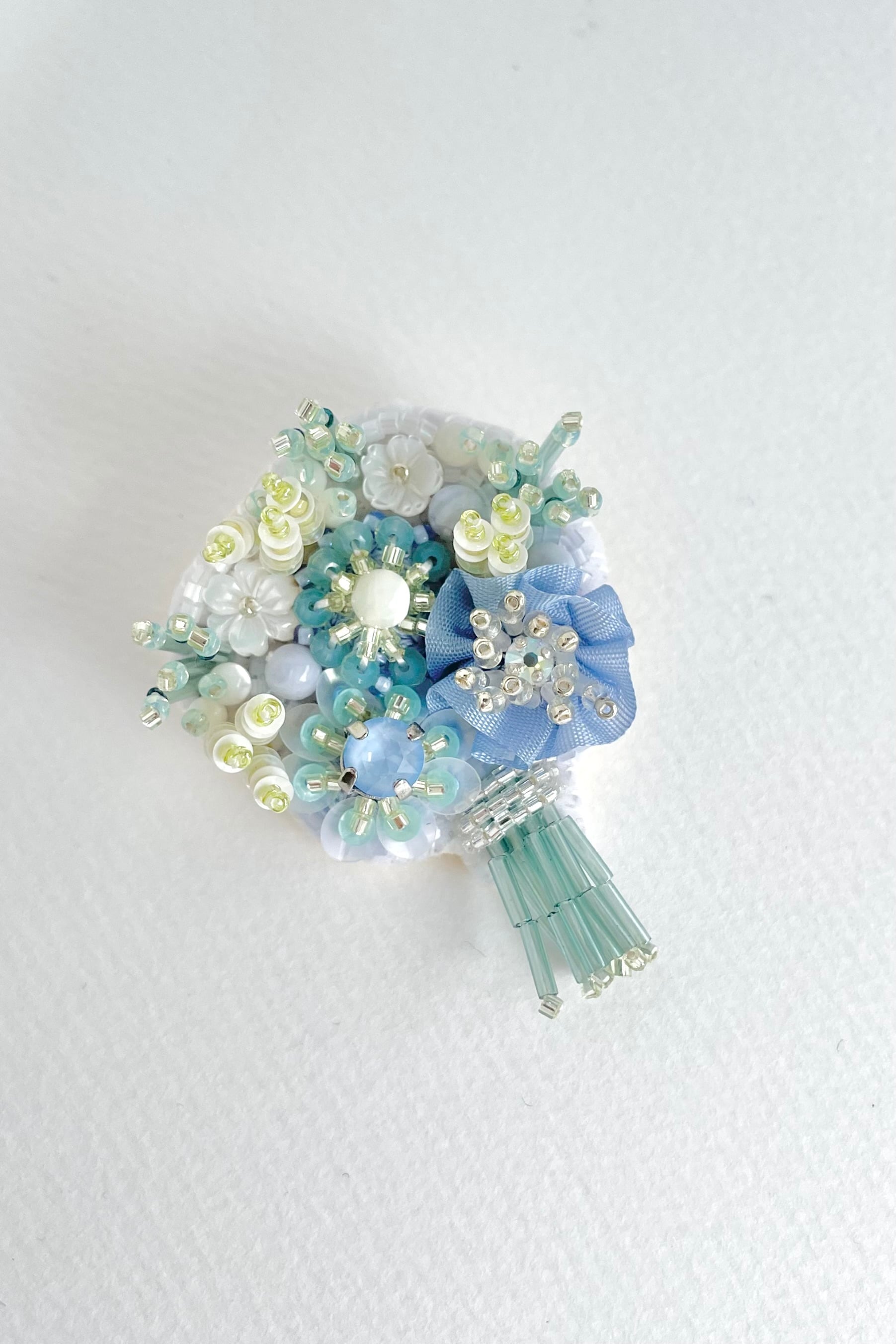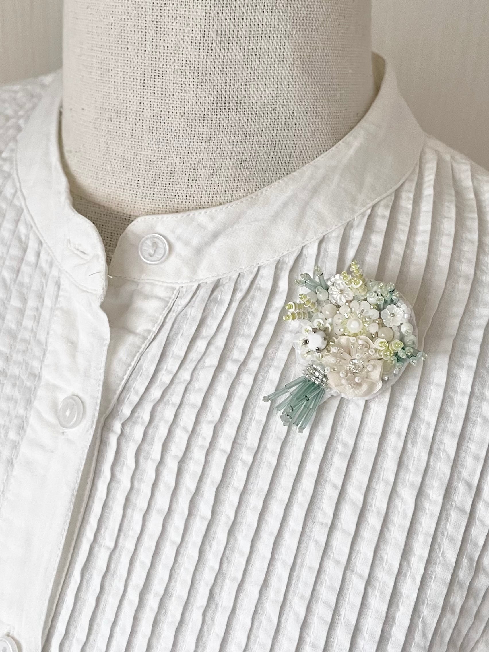 さわやかなハーブをギュッと束ねたイメージのビーズ刺繍ブローチ